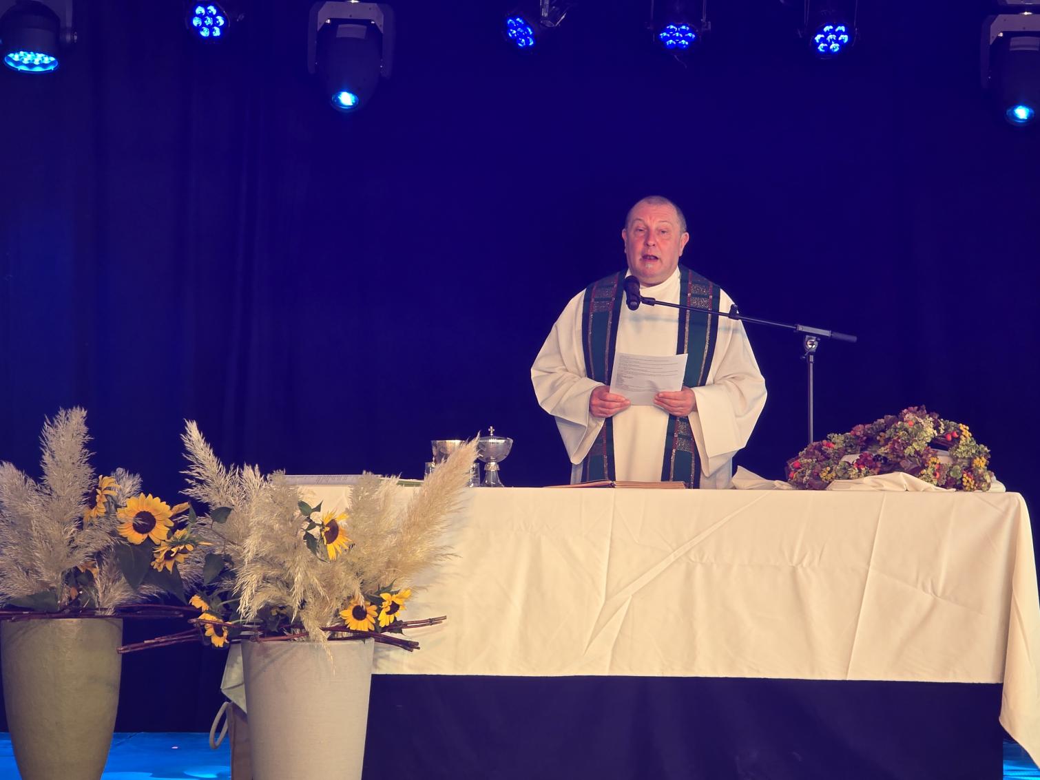 Cedric was al vroeg uit de veren om alles op tijd klaar te krijgen. Dirk en Olivier stonden in voor licht, klank en beeld en kweten zich prima van hun professionele taak. Luc D. zorgde voor de muzikale noot met zijn synthesizer en Agnes C. zorgde voor bloemen en een krans. Allen zijn medewerkers van het eerste uur op wie je steeds kan rekenen! In zijn homilie legde deken Jo de nadruk op de verbinding tussen mensen, waar de kermis kan toe bijdragen.